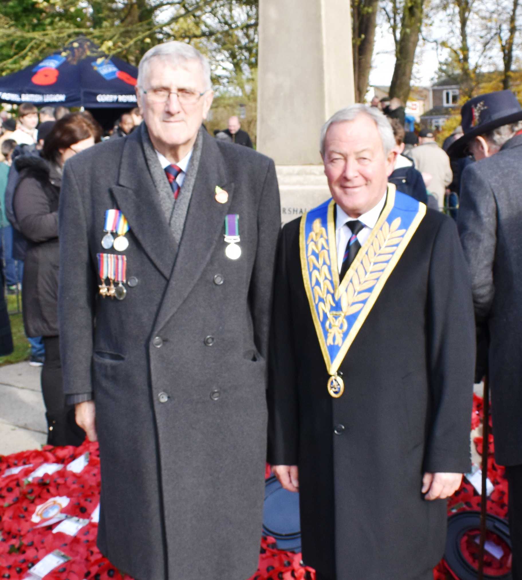 WBro Jim Spence representing the Northants and Hunts Provincial Grand Lodge proudly laid a wreath of poppies , and WBro Ronnie Stone laid a wreath on behalf of the Lodges in Corby.
