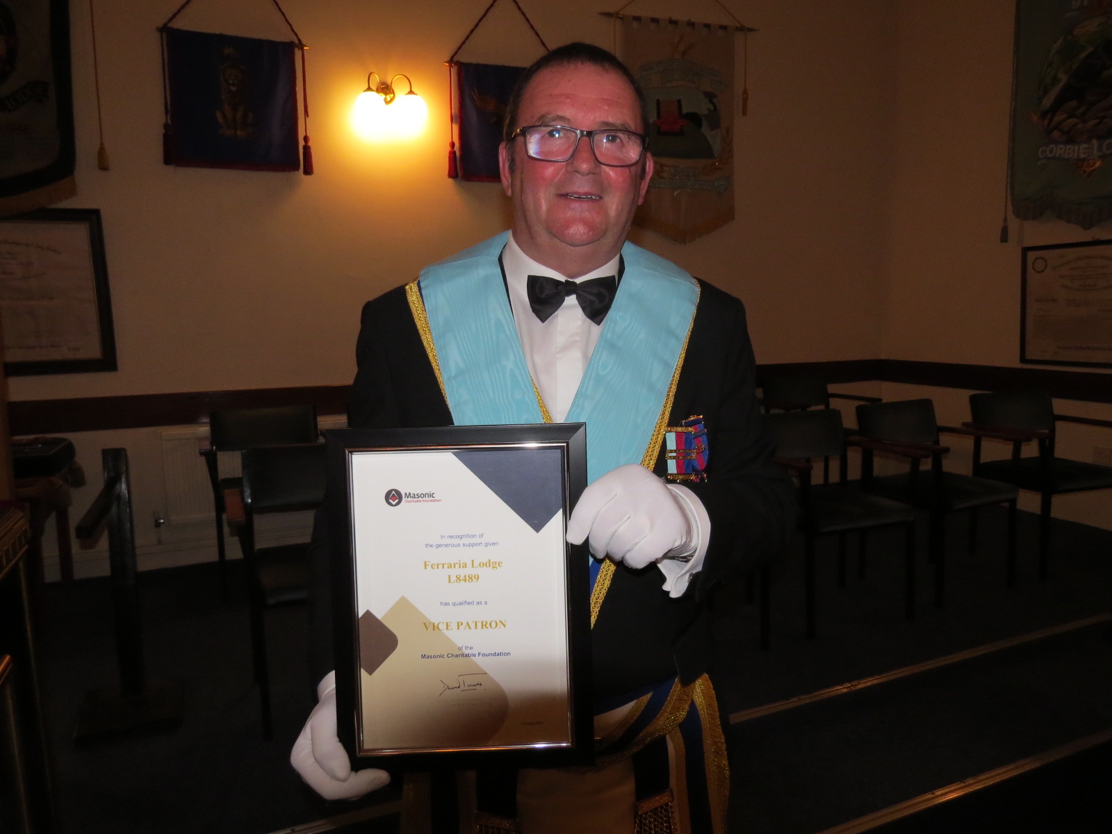 The accolade is the conferral of Vice Patron on Ferraria Lodge in recognition of the contribution of over £10,000 to the foundation in one year.