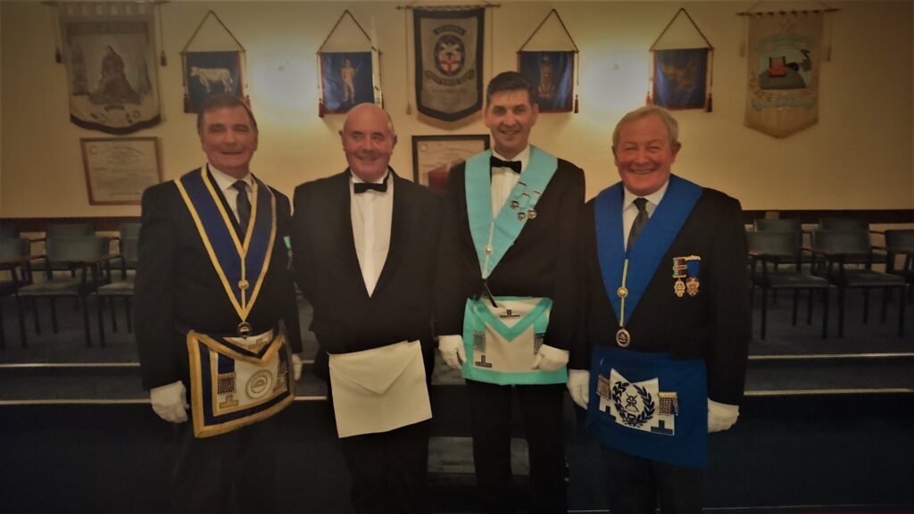 (l. to r.)WBro Ben Ambler, Bro. Geoff Taylor, WM Ferraria Scott Mcleod, WBro JIm Spence