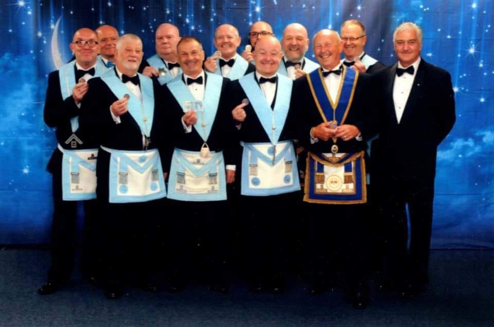 As many of you know, Rab Reid runs a group of Thistle & Rose masons who visit other lodges during the masonic season. The slight twist is that each of ‘RABS POSSEE’ as they call themselves, has to produce their membership coin whenever they are together as a group at meetings.